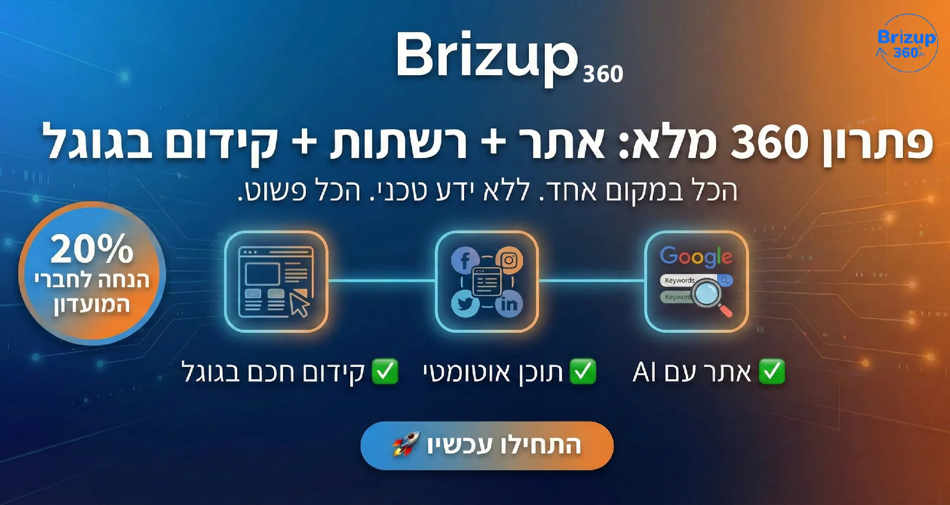 פתרון 360 מלא לבעלי עסקים ופרילנסרים: אתר + רשתות חברתיות + קידום בגוגל