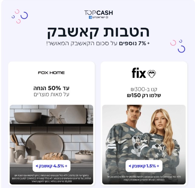 הטבת קאש-בק של כרטיס האשראי של המועדון-TOPCASH!
